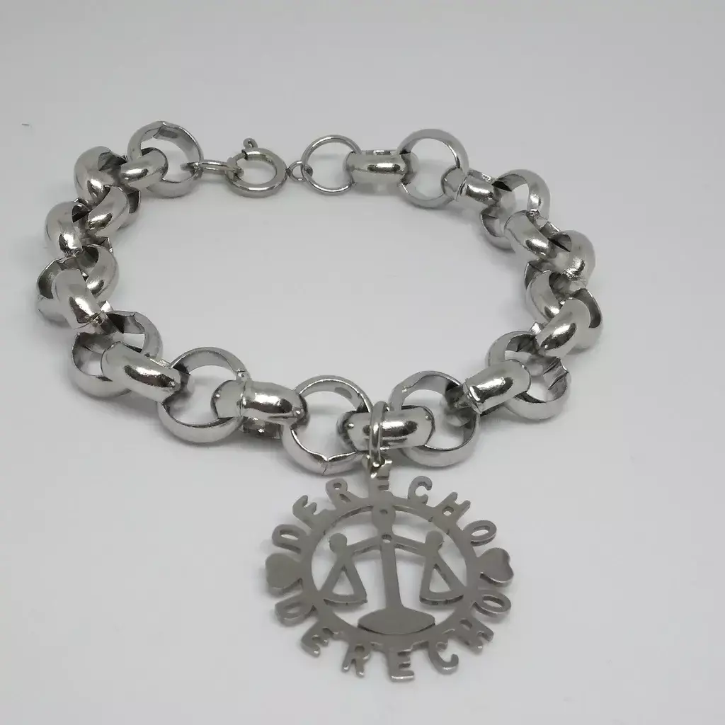 Pulsera Rolo de Acero Quirurgico con dije de Acero Quirurgico de excelente calidad. El acero quirurgico es un material inalterable y antialérgico.